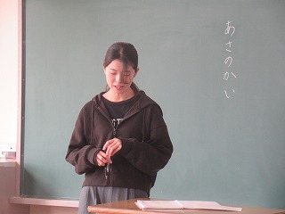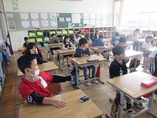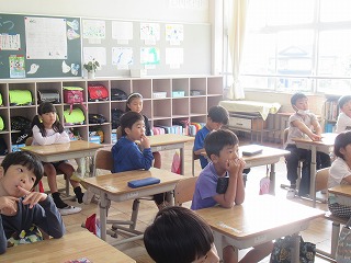 1年2組では、朝の会が行われており、今日の予定について話されていました。