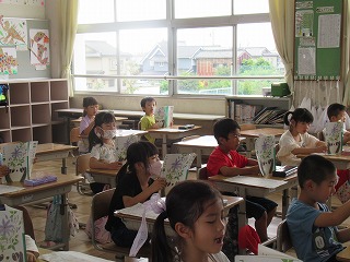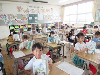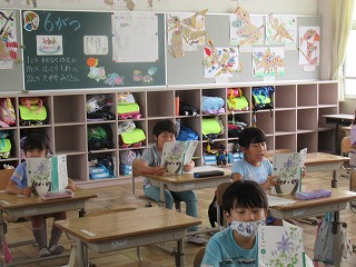 1年1組では、国語の授業で、「おおきなかぶ」を音読していました。音読するとき本をしっかりもち、上手に読んでいました。