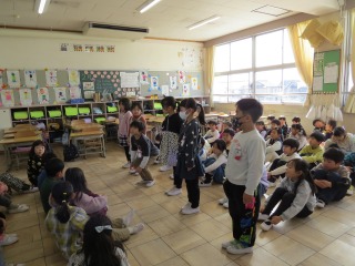 2クラス合同で、何か練習をしていました。