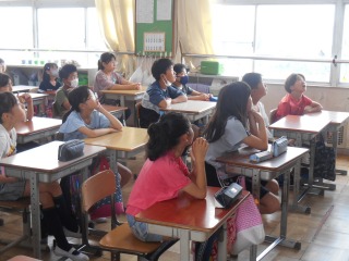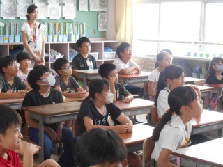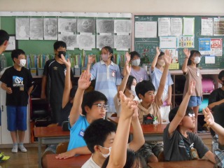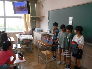 6年生が奈良県のクイズを出していました。修学旅行で学んだことを、面白く発表していました。