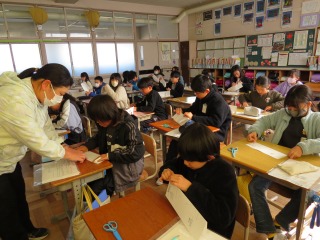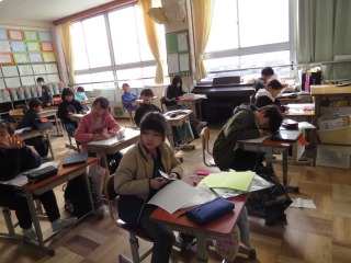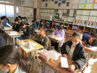 飛び出すカードを作っていました。手紙に飛び出す仕掛けを作り、手紙を書いていきます。