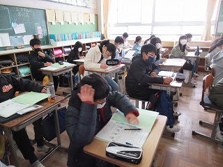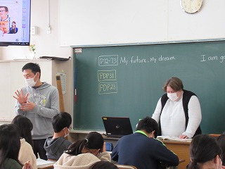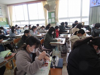 6年2組では、外国語が担任の先生とALTのヘレン先生で行われていました。よく聴いていないと答えられない問題です。みんな真剣に取り組んでいました。