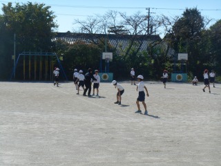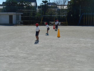 リレーの練習をしていました。各グループ1列になり、バトンパスの練習をしていました。