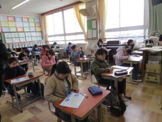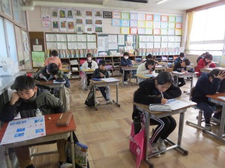 「水のすがたと温度」のテストを行っていました。じっくりと考えながら解いていました。