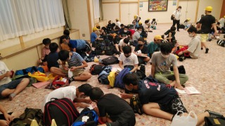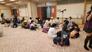 6年生は、無事、班別京都分散学習を終えて旅館に到着しました。検温、消毒を終え、2階の集会場で見学メモを記入し、先生から予定の確認の話を聞きました。