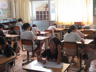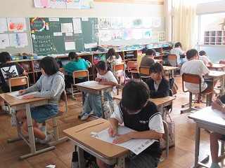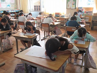 4年1組では、国語の時間、漢字のテストを行っていました。