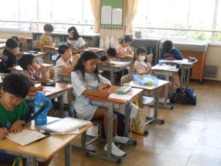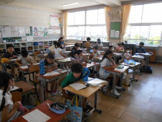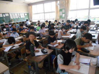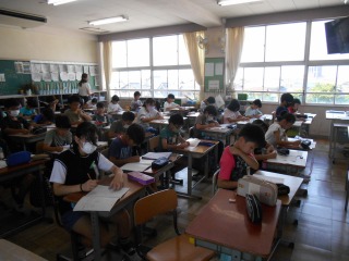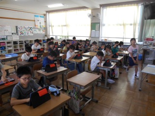 タブレットやテストを使って、朝学習に取り組んでいます。