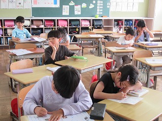 2年1組は、国語の時間でした。テストの漢字で間違え直しができた児童から、先生に見せに行っていました。今度は間違えないようにね。