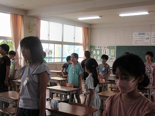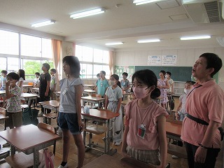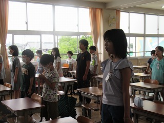 4年1組が、音楽室で音楽の授業を行っていました。校歌を美しい歌声で歌っていました。