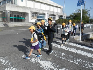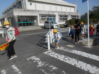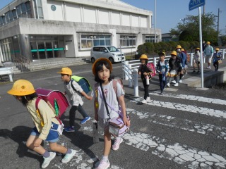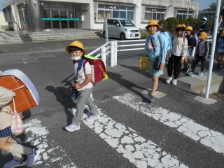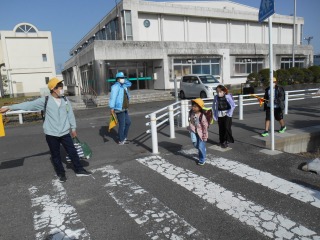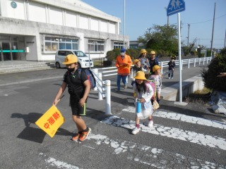 快晴です。通学班の班長さん、副班長さんがしっかりと仕事をし、横断歩道を渡してくれていました。