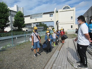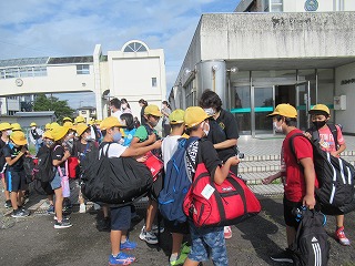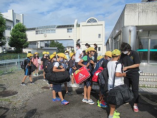 バスに乗る前におまじないのシールを腕に貼ってもらっているところです。