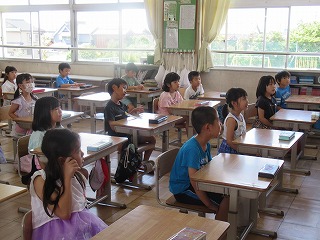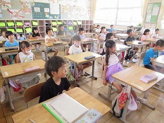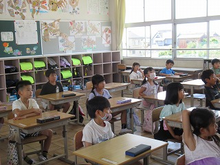 1年1組では、朝の会の時間、水泳カードの印かんの話を聞いていました。