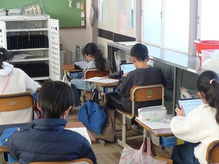 タブレット内にあるeライブラリーを活用して、一人一人が算数の問題を解いていました。