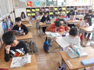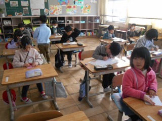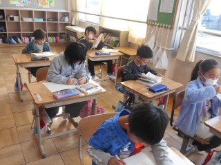 書写ノートを使って、ひらがなを練習していました。終わった人は、自分の課題に取り組んでいました。