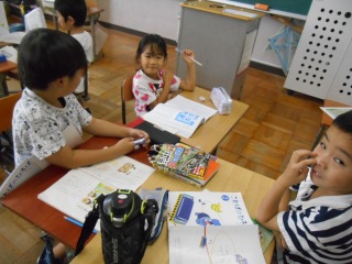 道案内の文章を作り、それをもとに班の友達を案内していました。行き先が同じでも、それぞれ案内の仕方が違い、楽しんでいました。