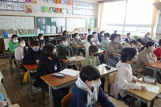6年1組の学級活動は、巣立ちの詩の練習予定についての話を聞きました。