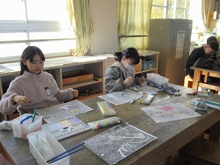 4年1組では、図画工作の時間、図工室で版画を行っていました。