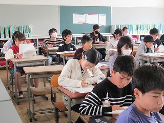 6年2組は学活の時間でした。学年通信を用いて、今後の予定や持ち物や回収物の確認を行っていました。