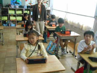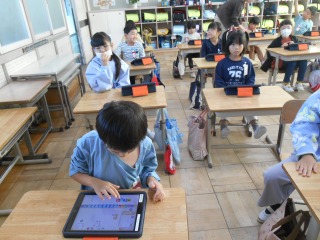 猫のキャラクターと宇宙飛行士がサッカーをしているところでした。それぞれのキャラクターをどう動かすか、イメージしながらプログラムを組んでいました。