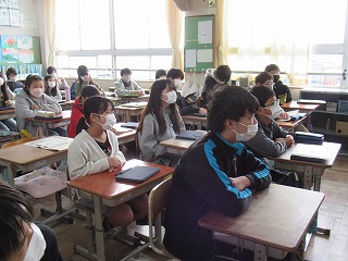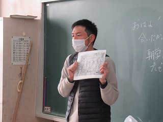 6年2組では、朝の時間に、ハザードマップづくりの説明をしていました。今日から、登校できました。がんばりましょう。