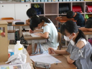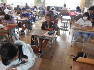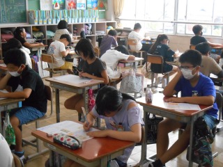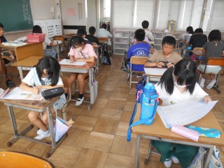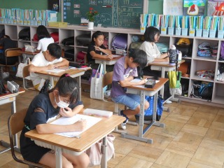 漢字のテストを行っていました。すべて答えようと、真剣です。