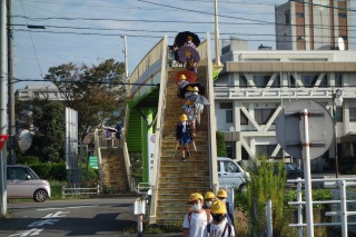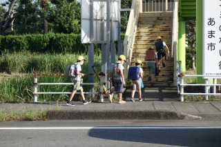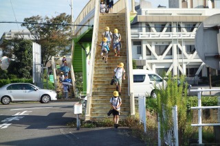 朝の北門では、みなさんが、きちんと整列して登校していました。歩道橋を降りるときは、安全に気をつけてゆっくり降りてくださいね。