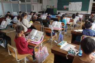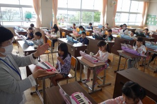 1年1組の音楽は、鍵盤ハーモニカの練習をしました。みんなで、演奏する音階とリズムを覚えました。