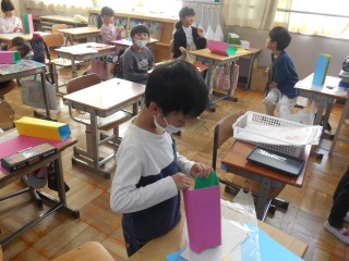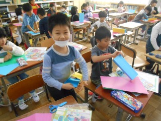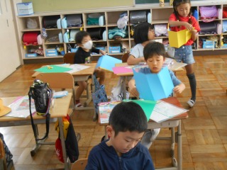厚紙を折るのに苦労していましたが、一生懸命に取り組んでいました。