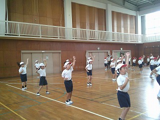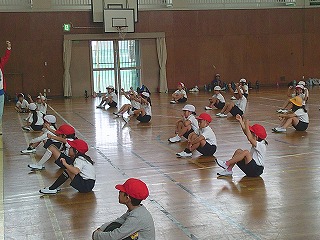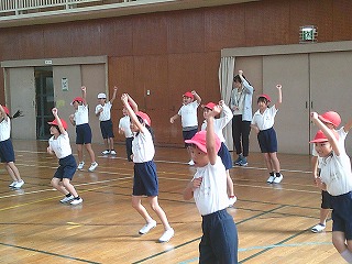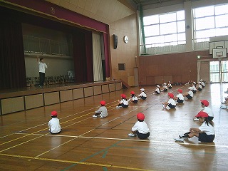 ミワリンピックに向け、表現運動の練習をしていました。舞台の上の先生に合わせ、一生懸命に覚えようとしていました。
