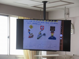 1年2組では、大型モニターを使い、日誌の答えあわせを行っていました。
