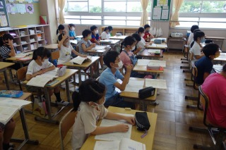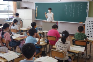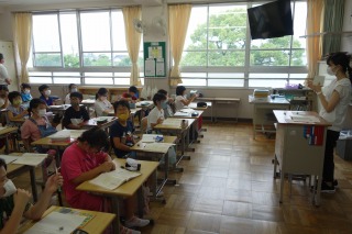4年1組の国語は、「新聞をつくろう」の学習でした。新聞づくりの方法について、説明を聞きました。