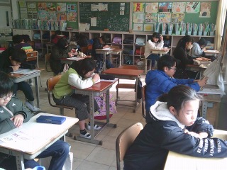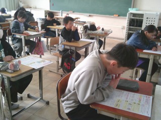 テストに取り組んでいました。食材の栄養素などについて、学習したことを思い出しながら解いていました。