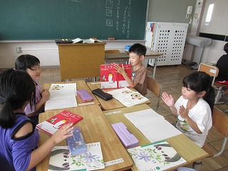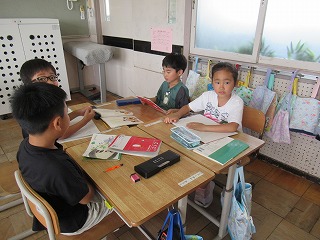 1年2組では、国語の時間、4人グループになって発表会をしていました。