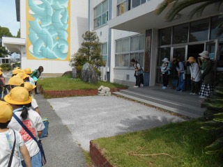 生活科の学習で、町探検に出かけました。学校より南方面へ出かけました。6名の保護者の方にボランティアで引率を手伝っていただきました。暑い日でしたが、無事に戻ってくることができました。ありがとうございました。
