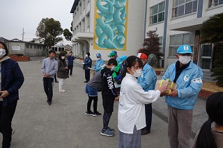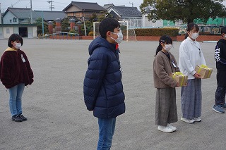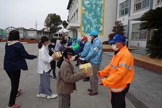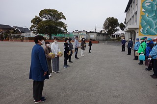 今朝、地域の見守り隊の代表の方々にお集まりいただき、感謝の会を行いました。毎日登下校の安全を見守って下さっていることへ、子どもたちが感謝の言葉を伝え、感謝のプレゼントを渡しました。見守り隊の皆様、本当に毎日ありがとございます。今後とも、よろしくお願いいたします。