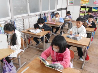 低学年は絵本が多いです。静かに読んでいました。