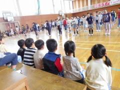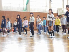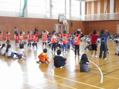 3年生は、チェッコリダンスの曲に合わせて、背中のメッセージを発表。全部読めたかな。曲「パプリカ」ではいっしょに歌っている1年生もいました。