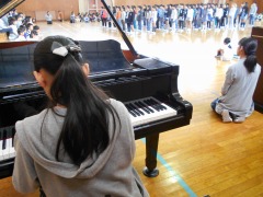 4年生は、1年生で習う曲「白くまのジェンカ」にのって歌いながら登場。そして、「お菓子の好きな魔法使い」の歌を披露。