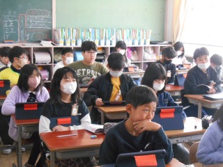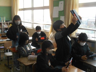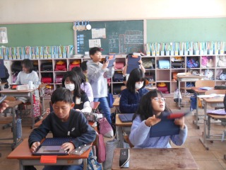 アンケートに回答するため、画面の二次元コードをタブレットで読み込んでいるところでした。