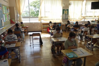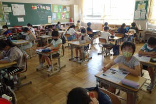 4年2組の理科は、月や星の見え方の学習でした。学習のまとめとして、テストを行いました。