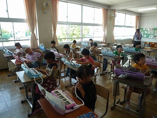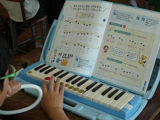 けん盤ハーモニカで「かっこう」を演奏するテストを行いました。