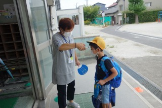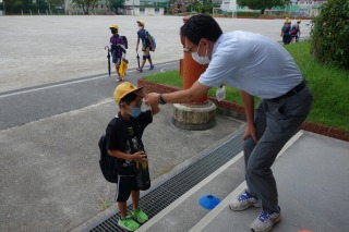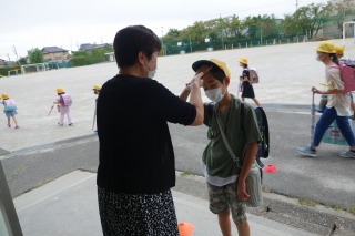 今日も昇降口で、検温をしてから教室に入ります。検温のときにあいさつやお願いしますという子がさらに増えてきましたね。