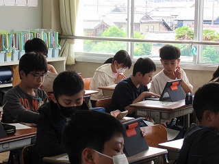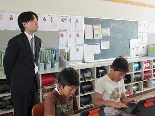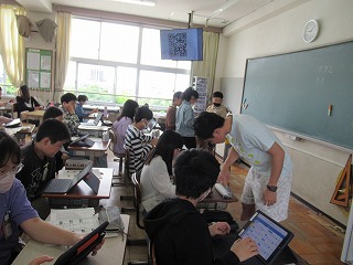 6年2組は体力テストの結果をQRコードから読みとったサイトに入力を行っていました。今は結果をデータで一括管理できるのですね。