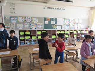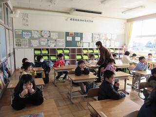 本日、VATの皆さんに来ていただき、1年生と2年生が外国語活動を行っていただきました。カードの絵を見て、ジェスチャーで友達に伝えていきます。大盛りあがりでした。
