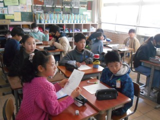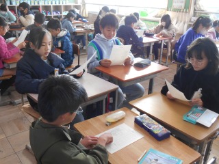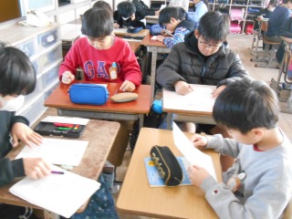 5年生は「いいとこ四面鏡」に取り組んでいました。友だちのよいところを探し、伝えあいます。