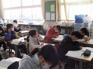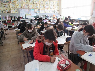 4年1組では、国語の時間、学習プリントにまとめる活動をしていました。