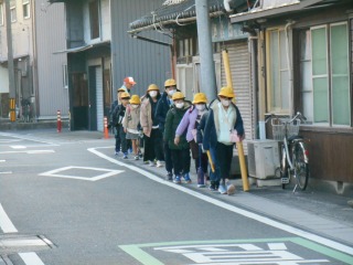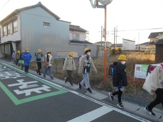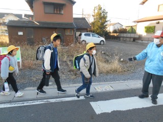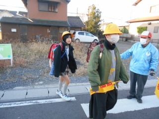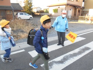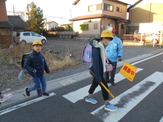 寒い日です。寒波が近づいています。きれいに並んで、安全に登校してきました。