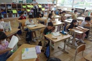 1年1組の国語は、『いちねんせいの うた』の学習でした。みんなで、教科書を読みました。