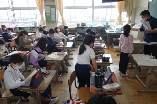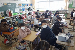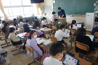 3年2組の総合的な学習では、プログラミングソフトの操作に取り組みました。