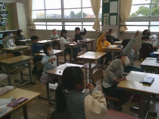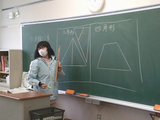 四角形や三角形のケーキを3人で仲良く分けるには、どう切るといいかを考えていました。いろんな切り方があって、面白かったです。